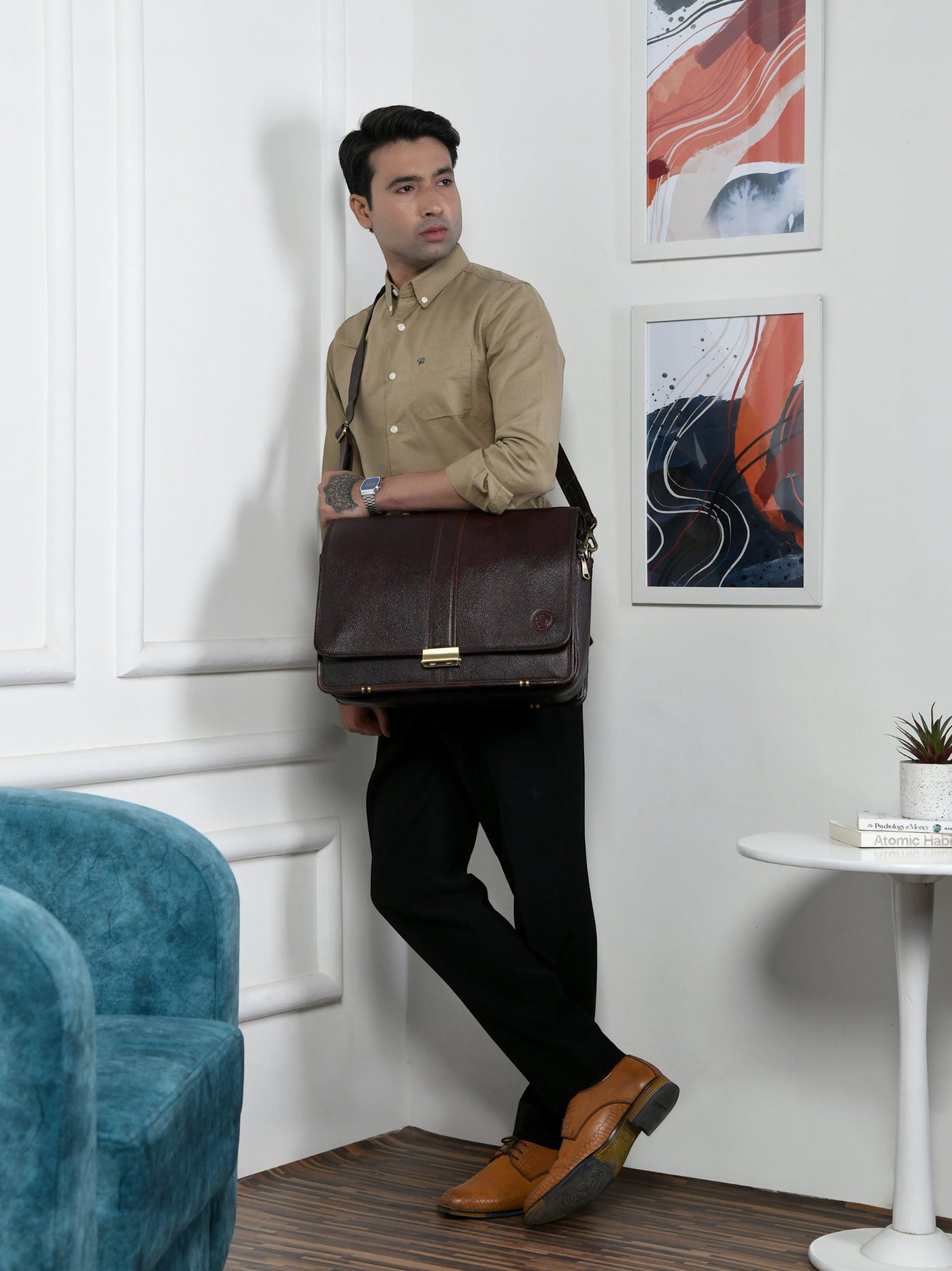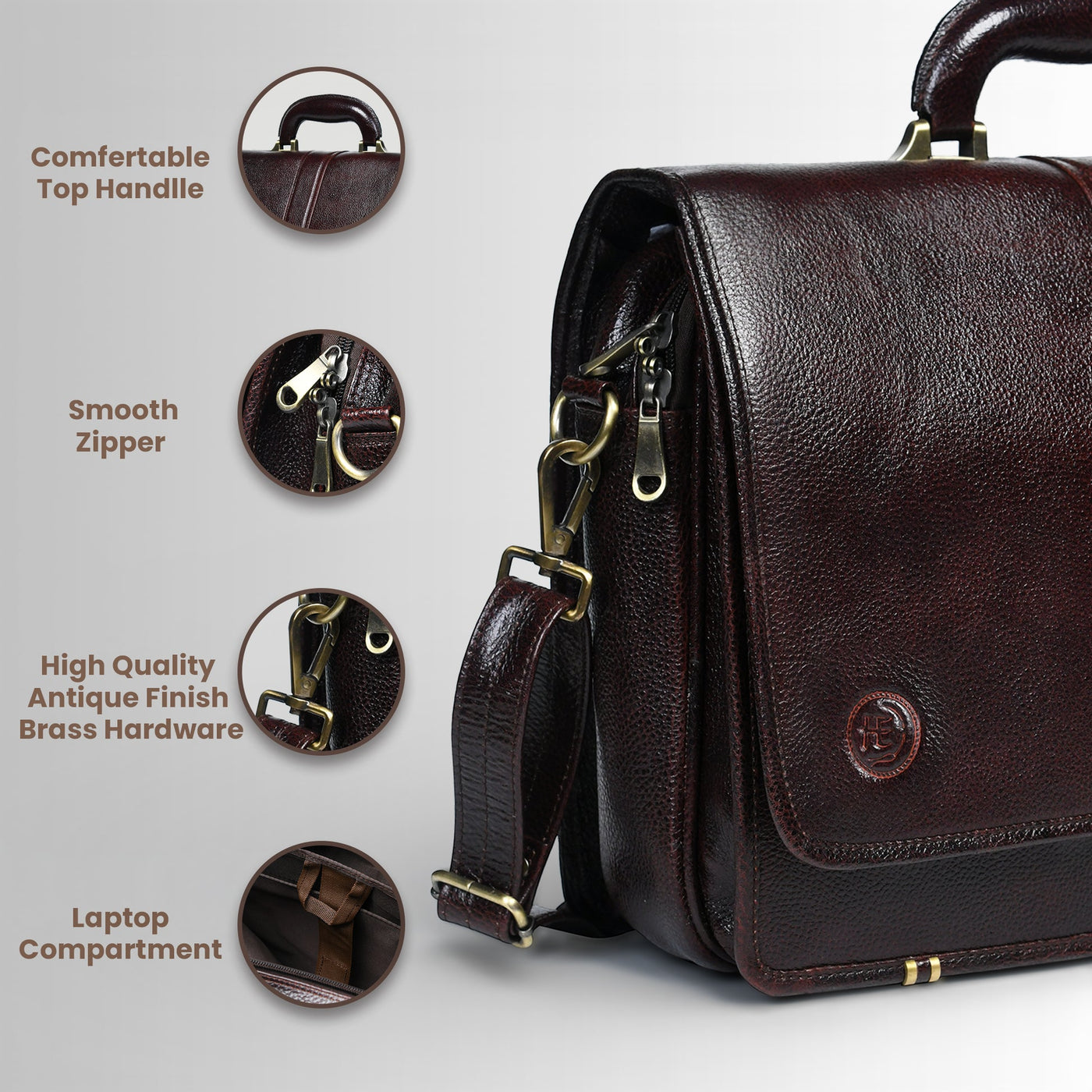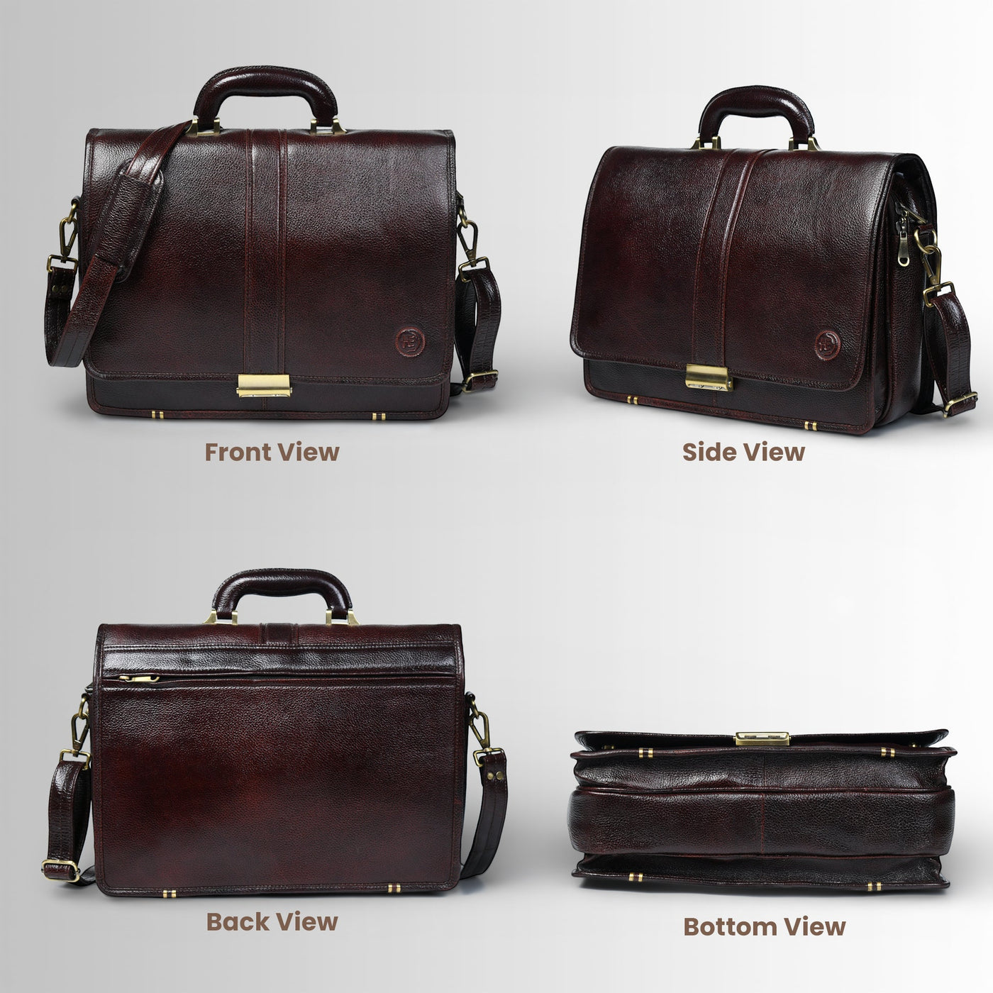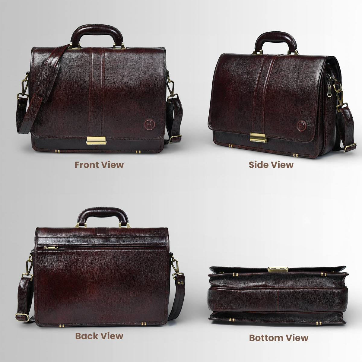 Executive Vintage Leather Briefcase – Multi-Compartment Office & Laptop Bag | Maroon colour