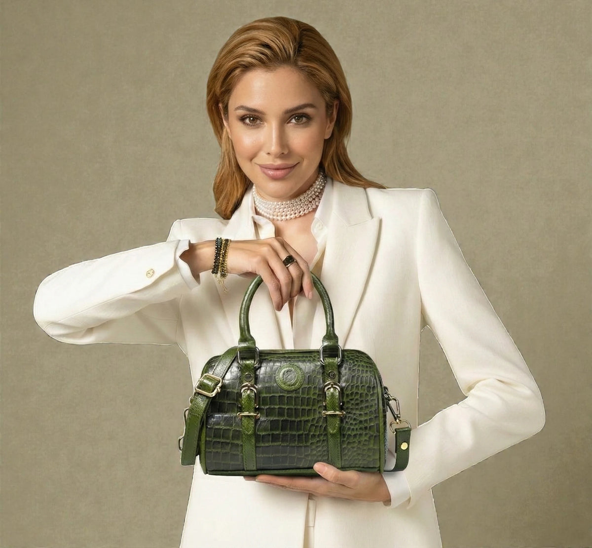Emerald Luxe Croc Satchel | Premium Leather Handbag |Olive Colour – Hestern