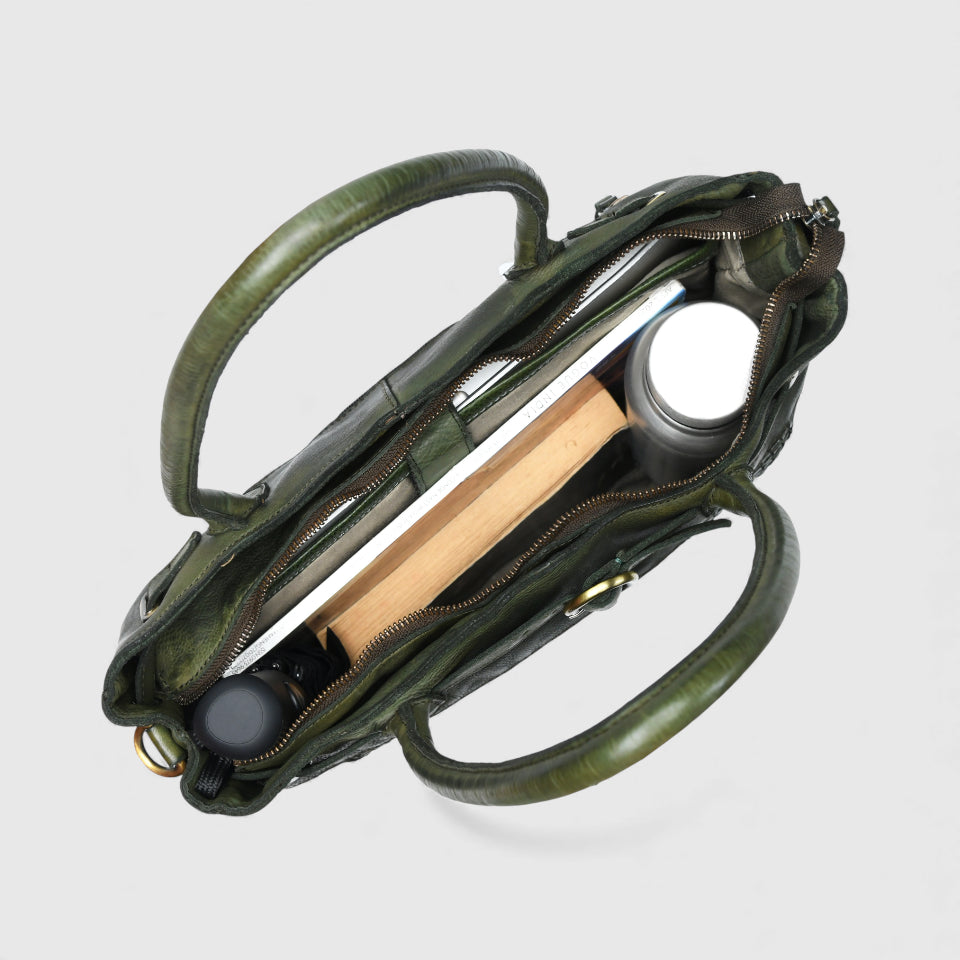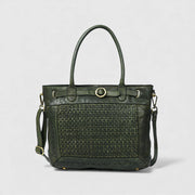 Vintage Woven Espresso Leather Women's Handbag - Olive Colour