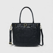 Vintage Woven Espresso Leather Handbag | Women's Work & Daily Tote | Black – Hestern