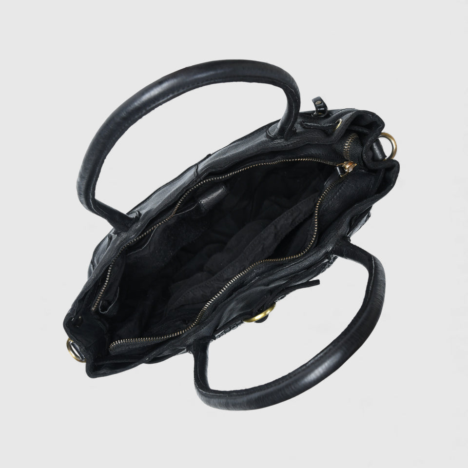 Vintage Woven Espresso Leather Women's Handbag - Black Colour