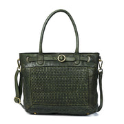 Vintage Woven Espresso Leather Women's Handbag - Olive