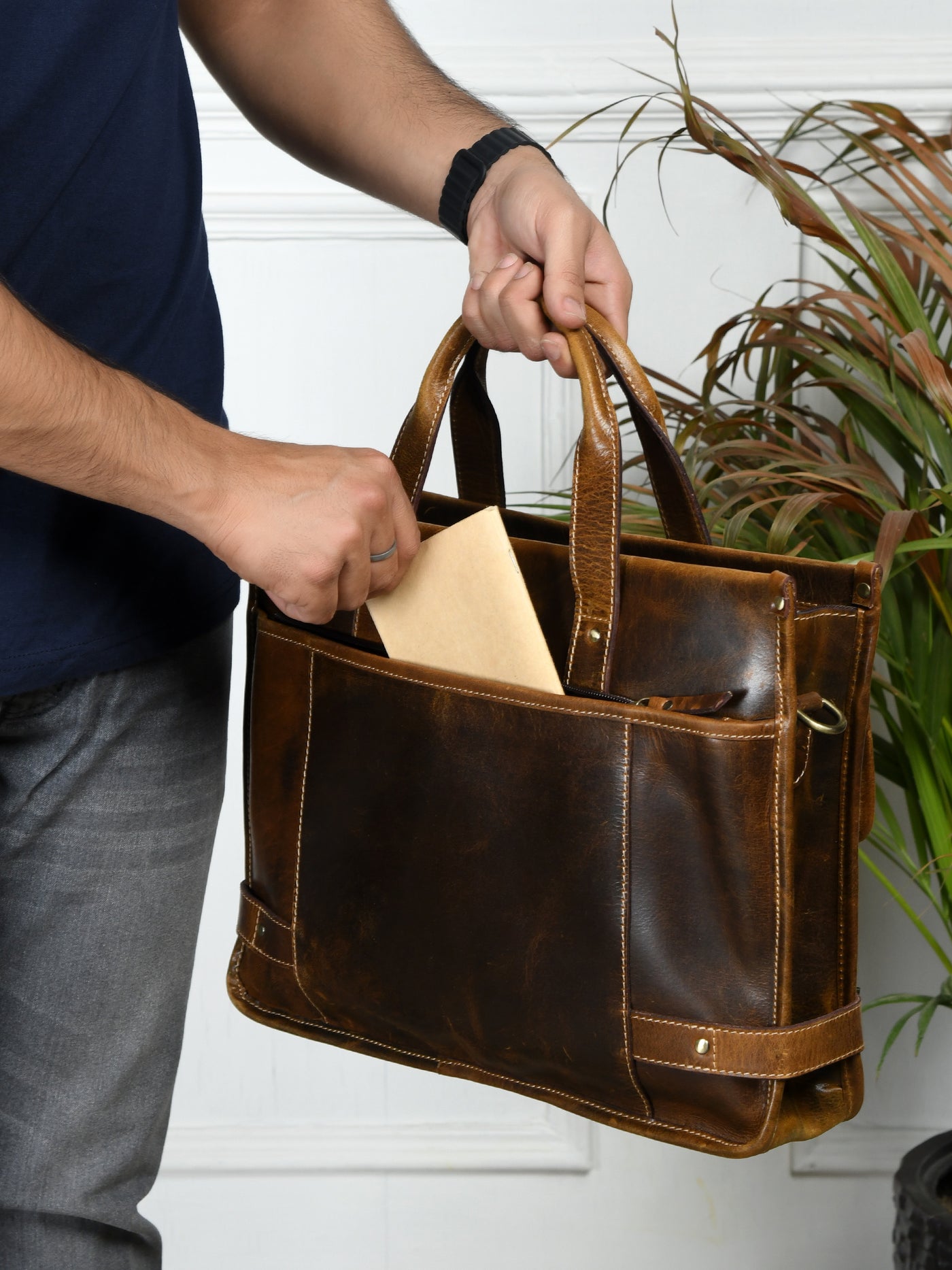 Heritage Leather Laptop Bag | Vintage Buffalo Leather Laptop Satchel – Hestern
