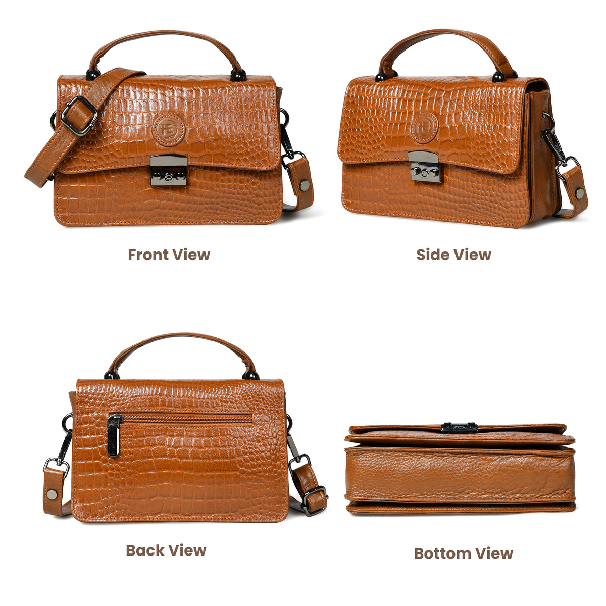 Imperial Croc Luxe Satchel Bag - Brown Colour