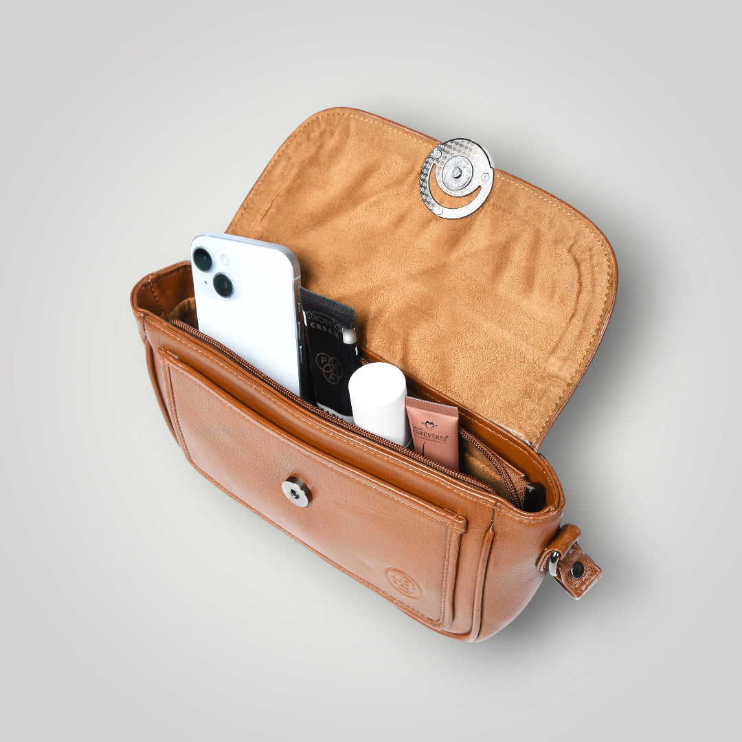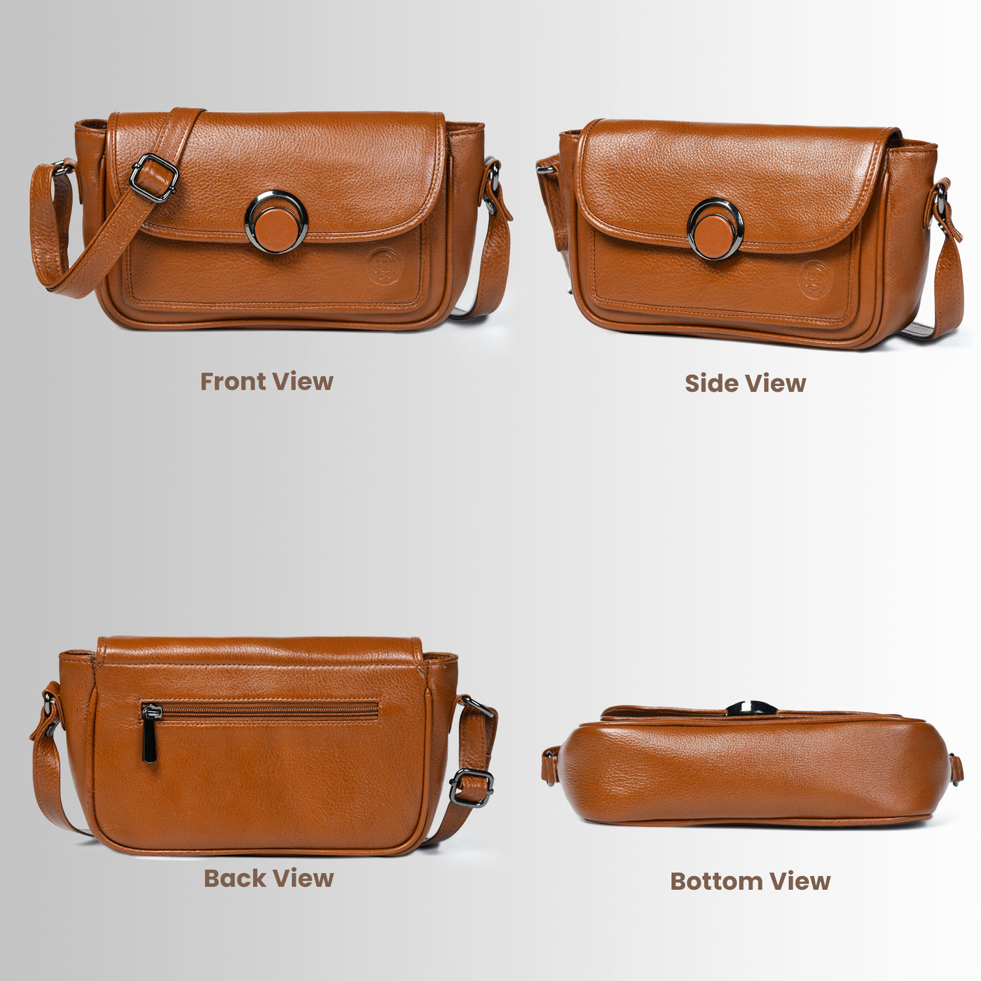 Verdant Elegance Women's Leather Handbag | Premium Leather with Circular Clasp | Tan – Hestern