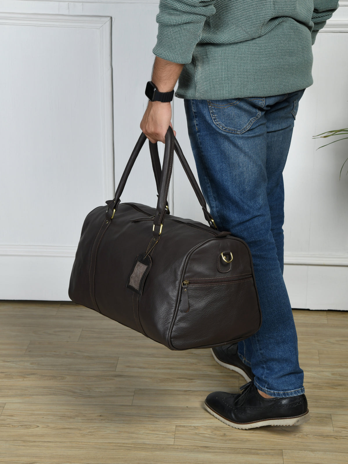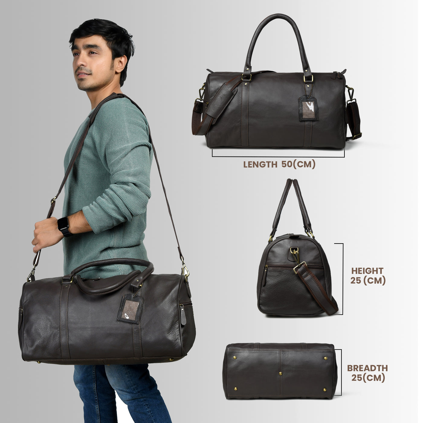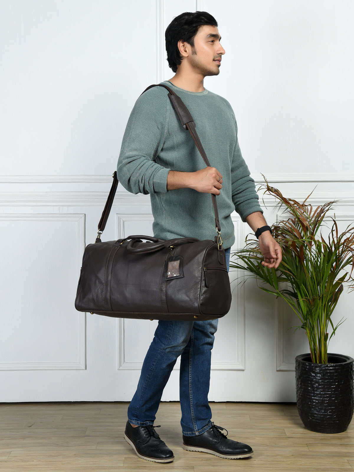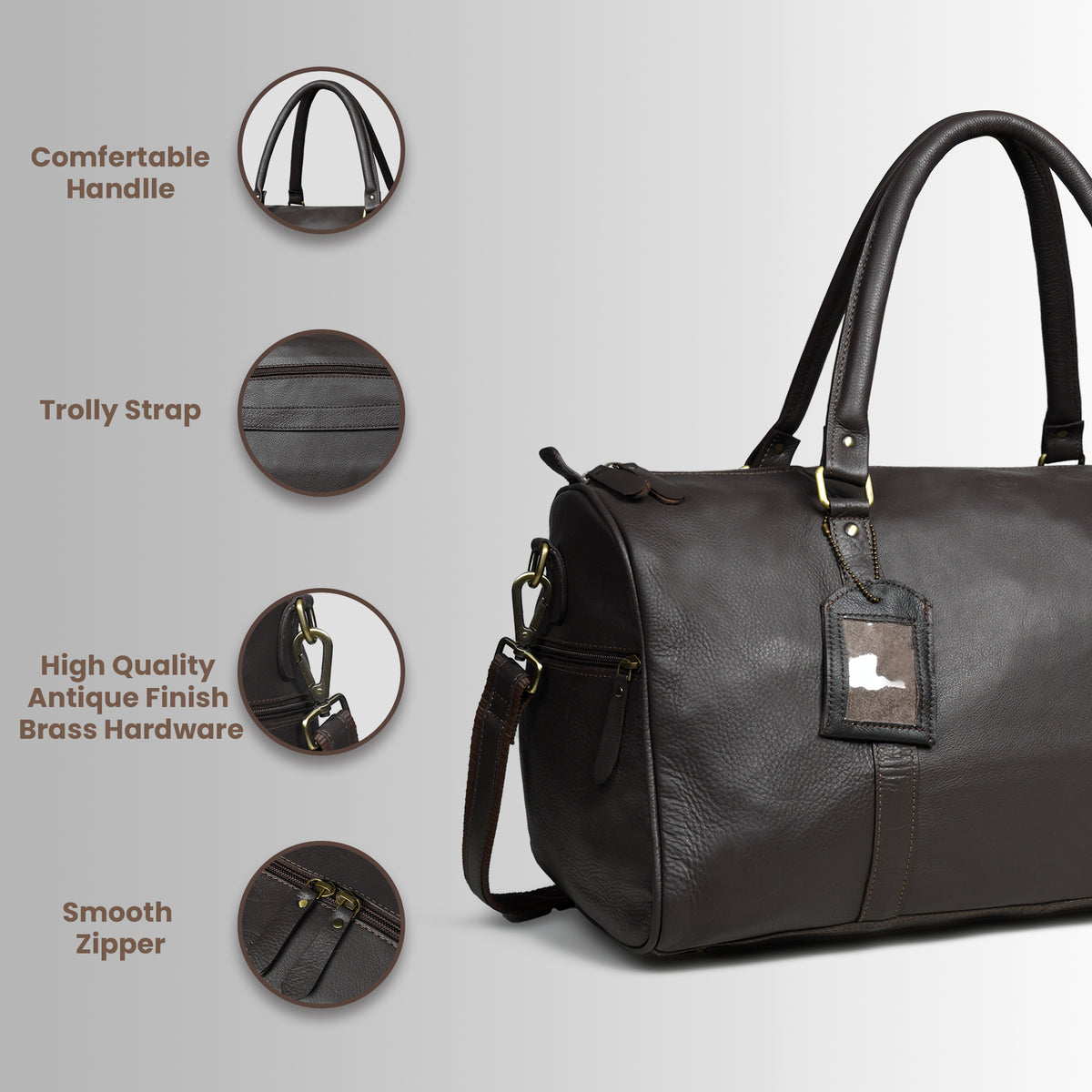 Voyager Leather Travel Duffle | Elegant Buffalo Leather Bag for Stylish Journeys | Brown Colour – Hestern