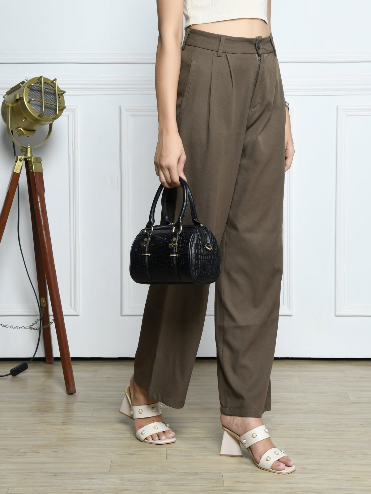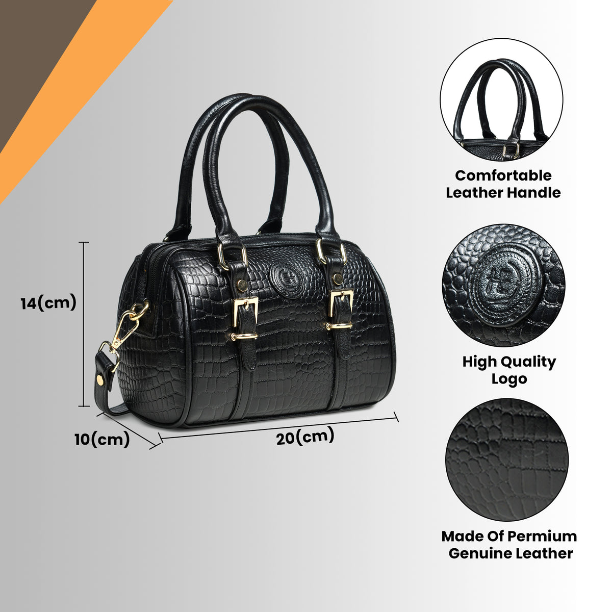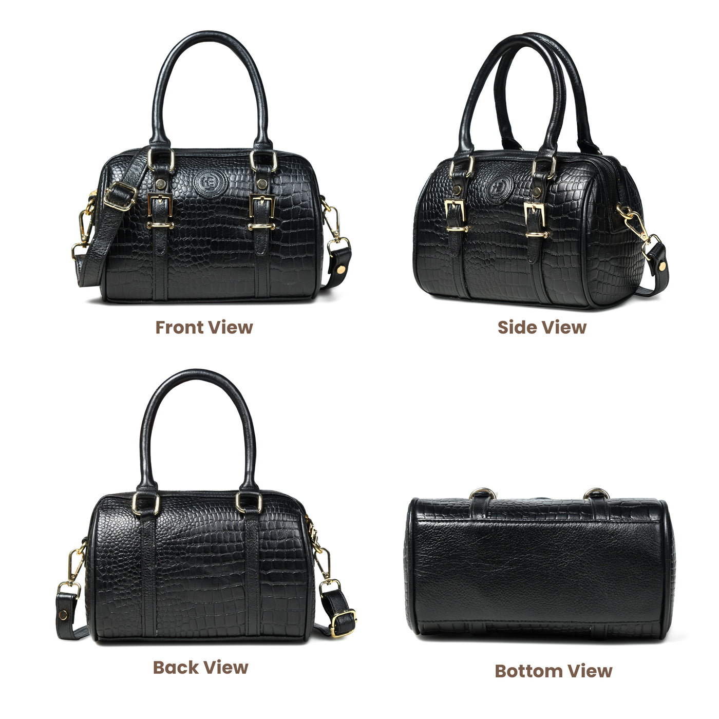 Emerald Luxe Croc Satchel Bag - Black Colour