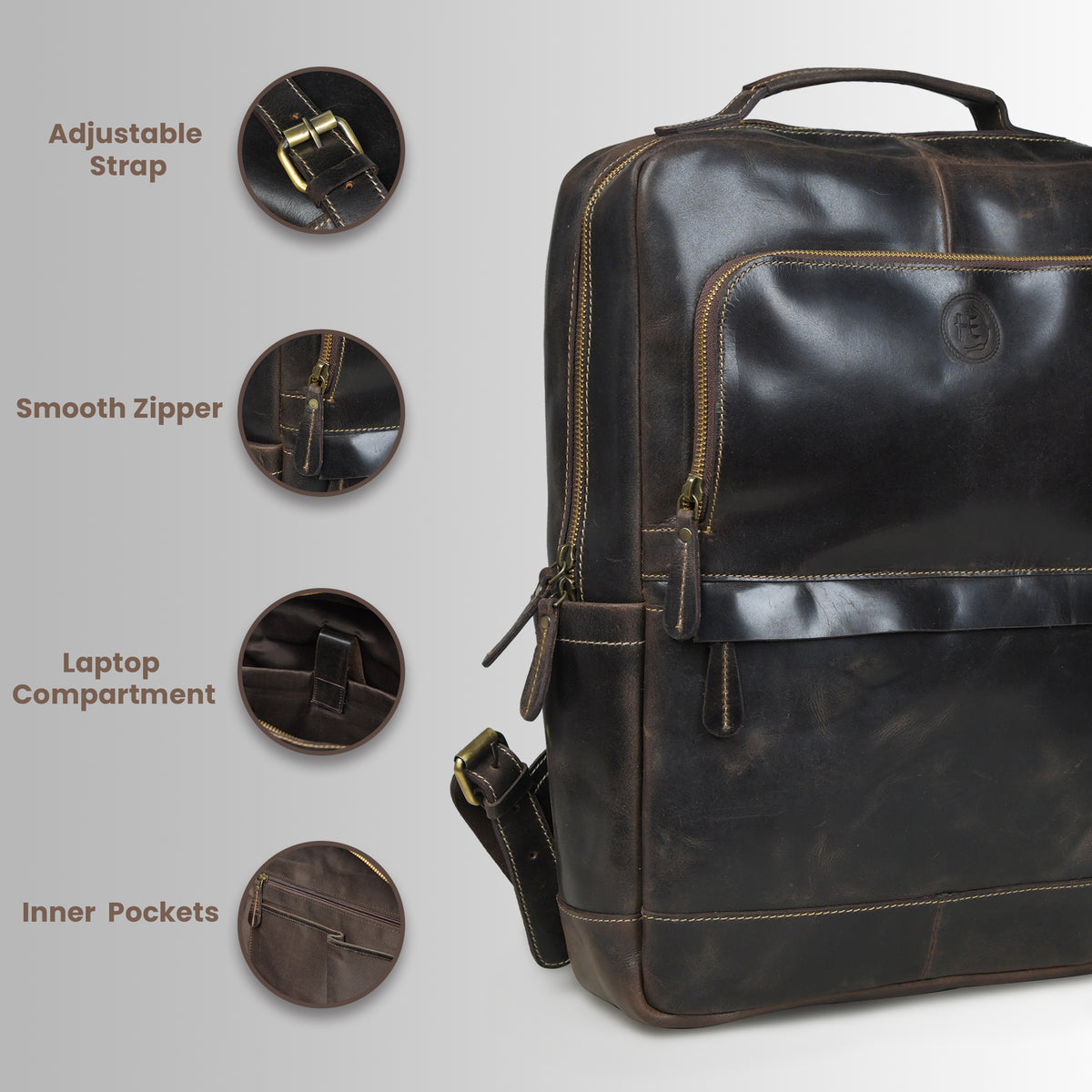 Alpine Vintage Leather Laptop Backpack | Full-Grain Buffalo Leather – Hestern