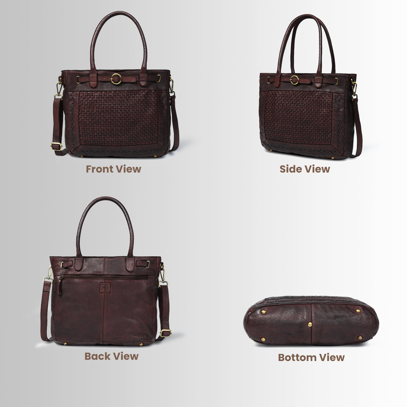 Vintage Woven Espresso Leather Handbag | Women's Work & Daily Tote | Brown – Hestern