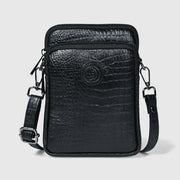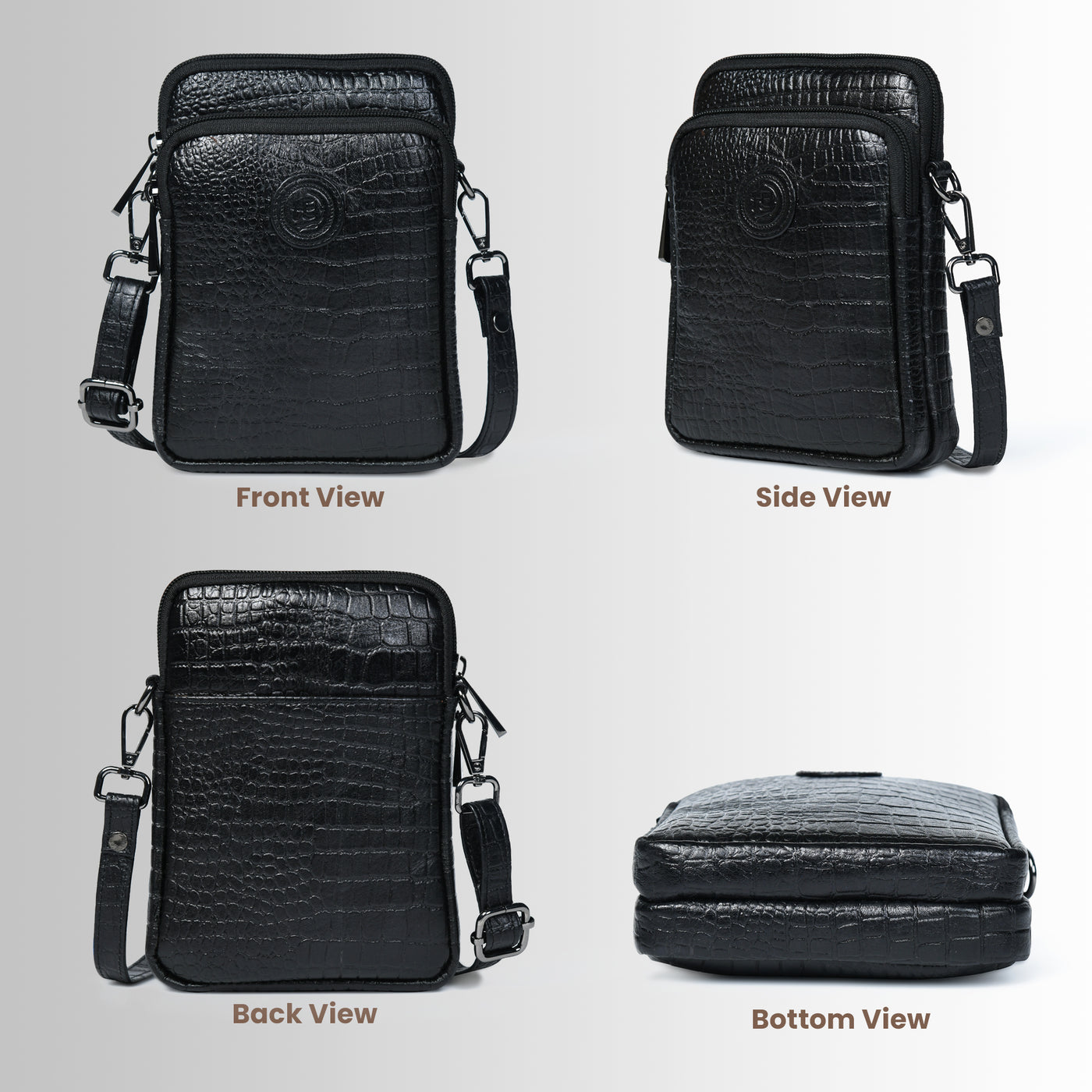 Croc Luxe Leather Sling Bag | Croc-Embossed Leather Crossbody | Black – Hestern