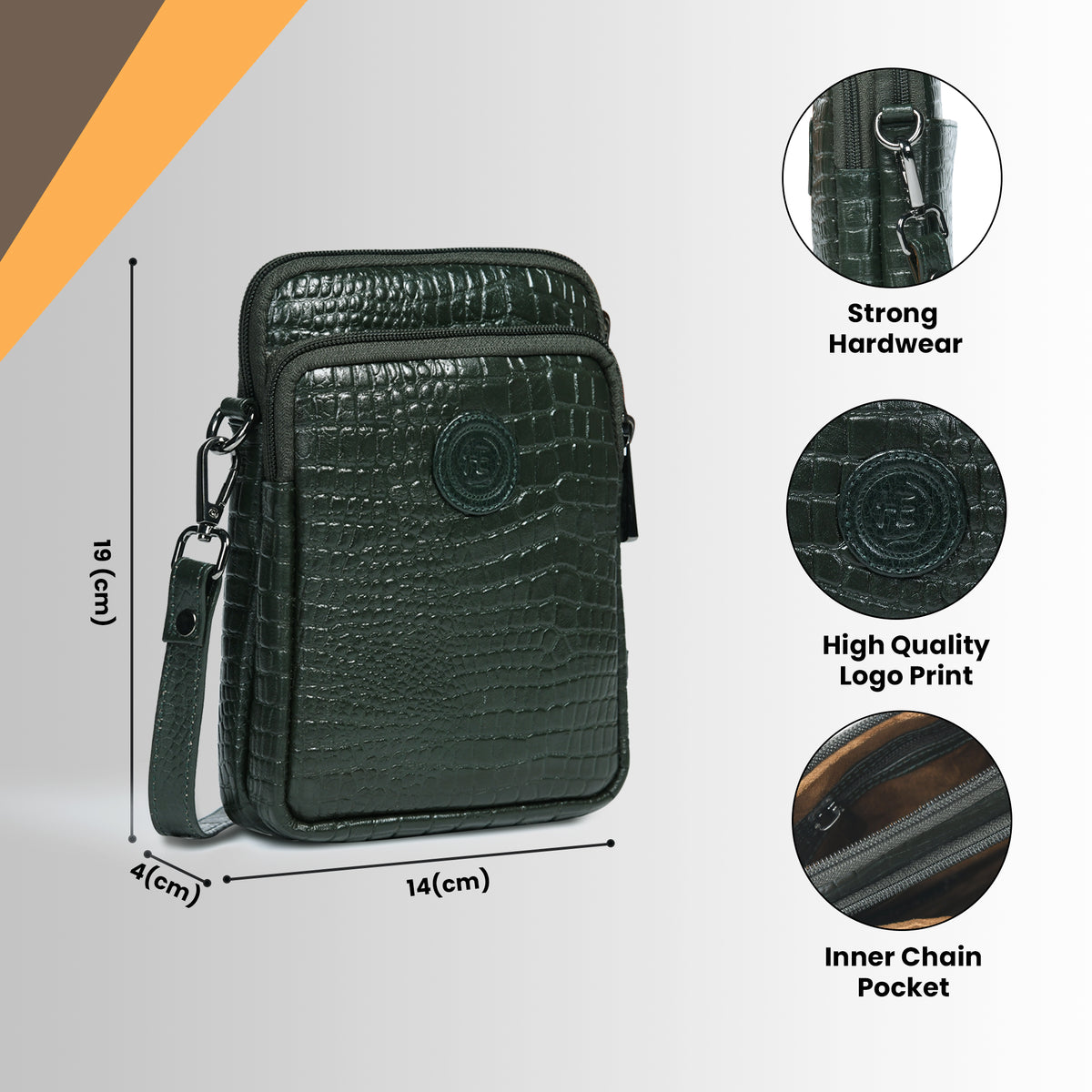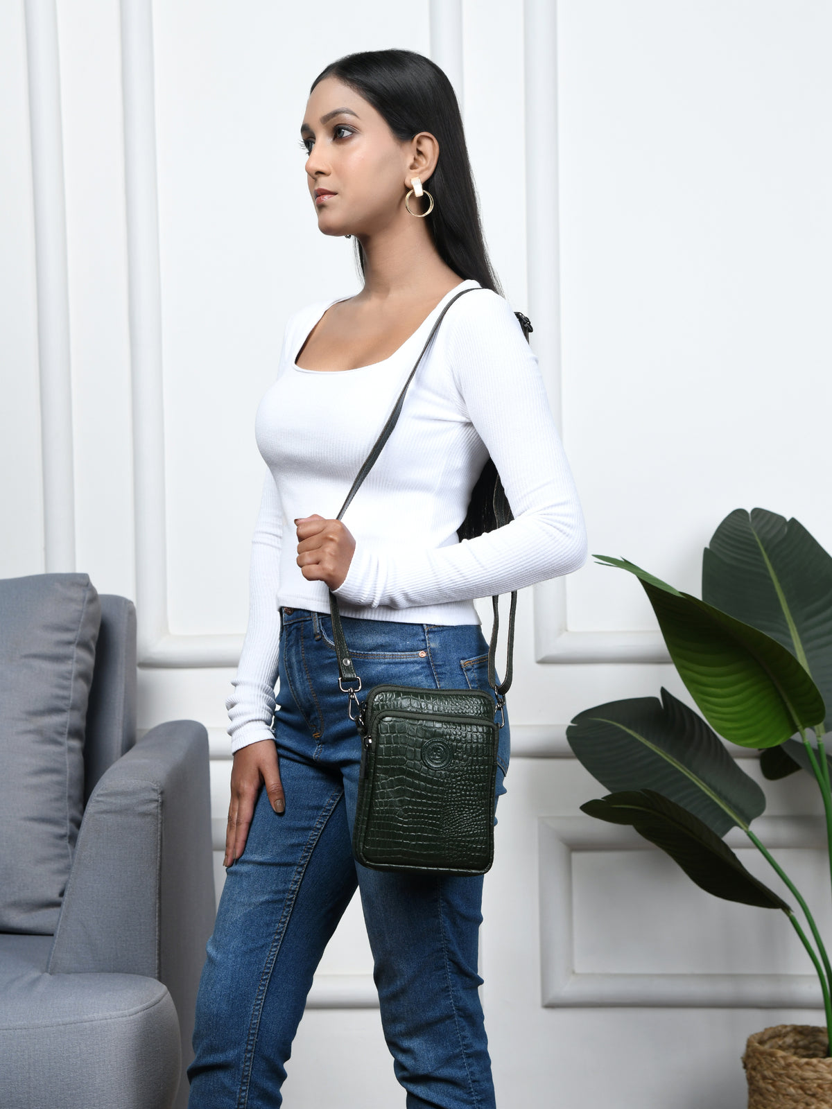 Croc Luxe Leather Sling Bag | Croc-Embossed Leather Crossbody | Green – Hestern