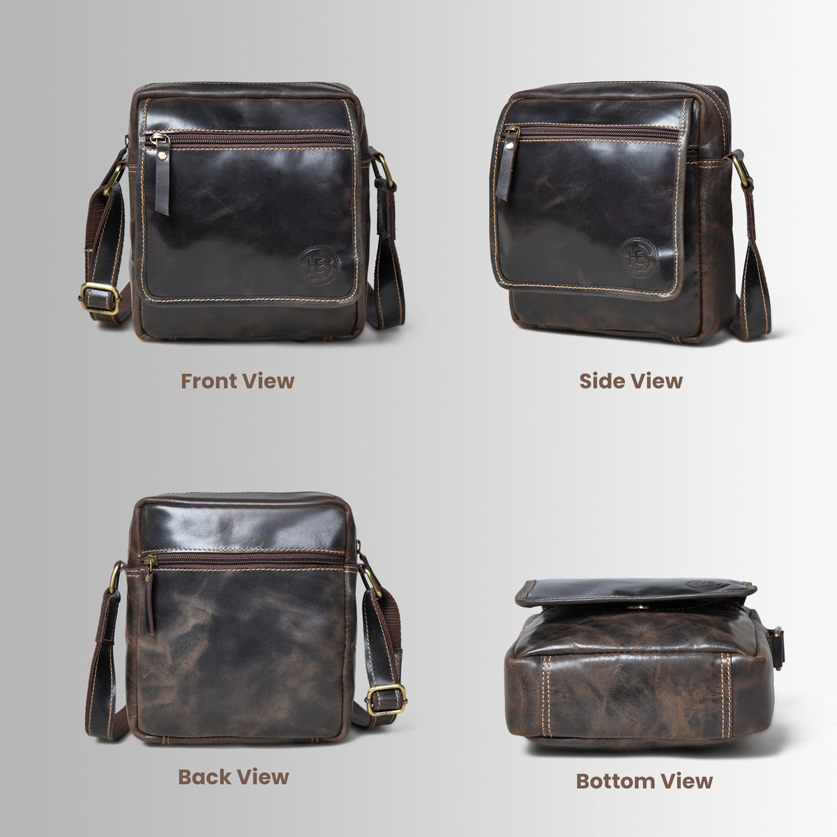Explorer Vintage Leather Sling Bag | Full-Grain Buffalo Leather Crossbody | Brown Colour – Hestern