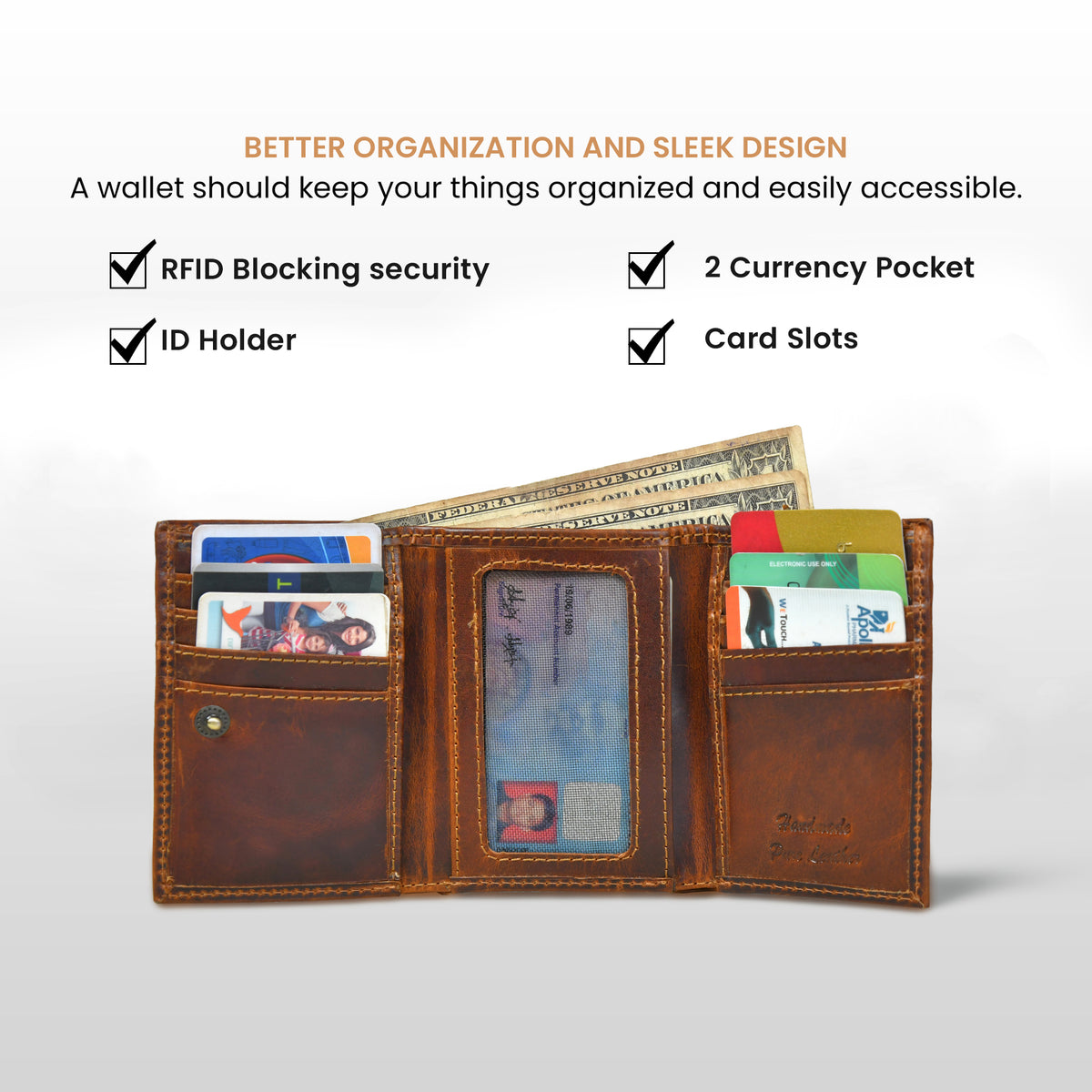 Midnight Luxe Vertical Bifold Wallet | Premium Black Leather RFID Wallet | Tan Colour – Hestern