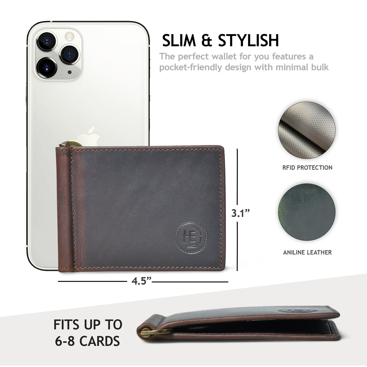 Slim Money Clip Wallet | Minimalist Full-Grain Leather Wallet with RFID Protection | Tan Colour – Hestern