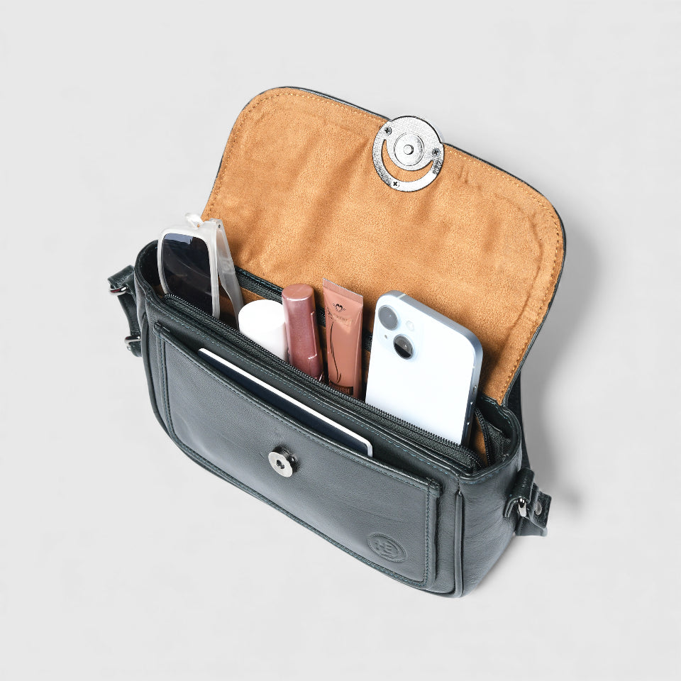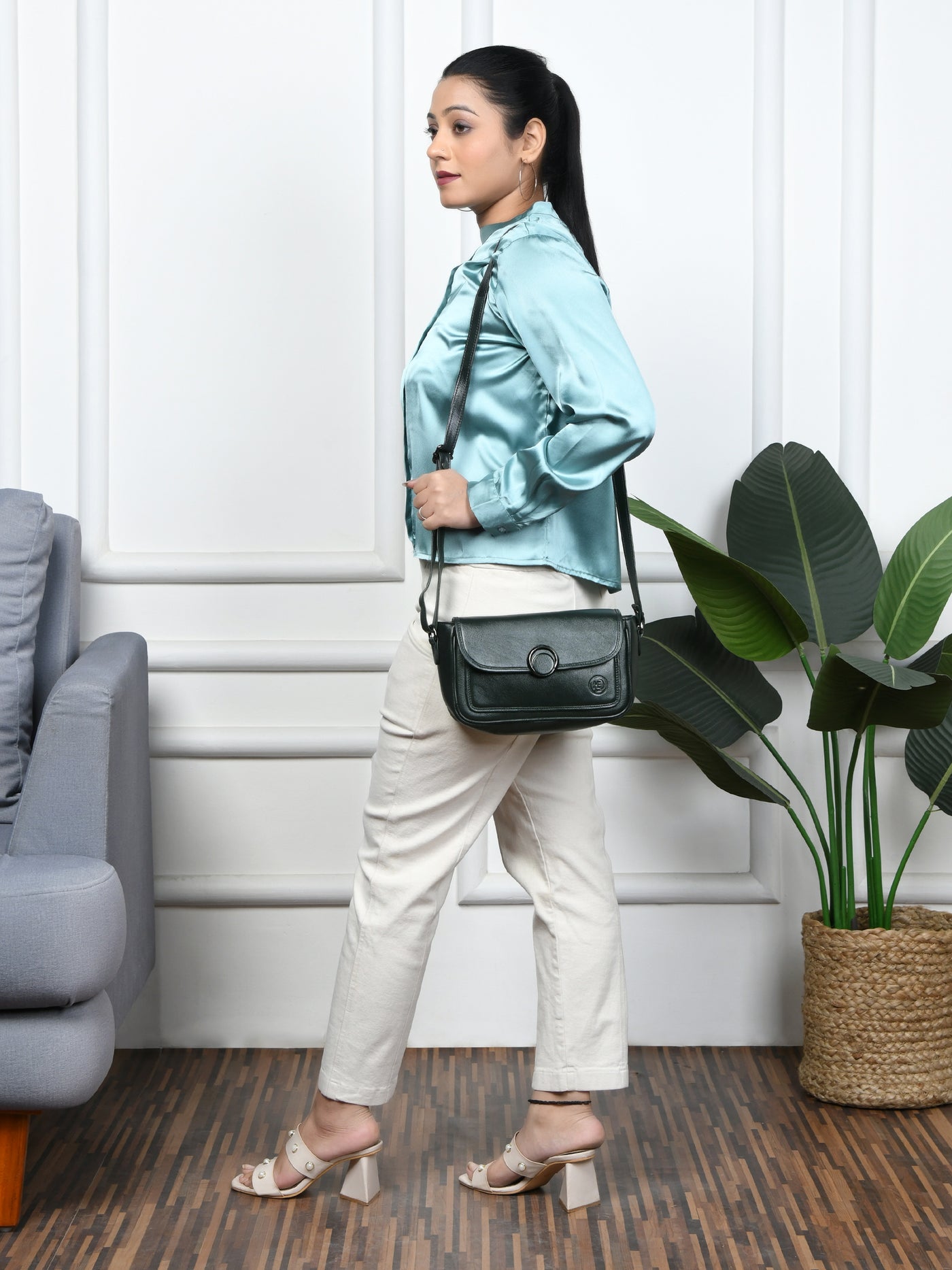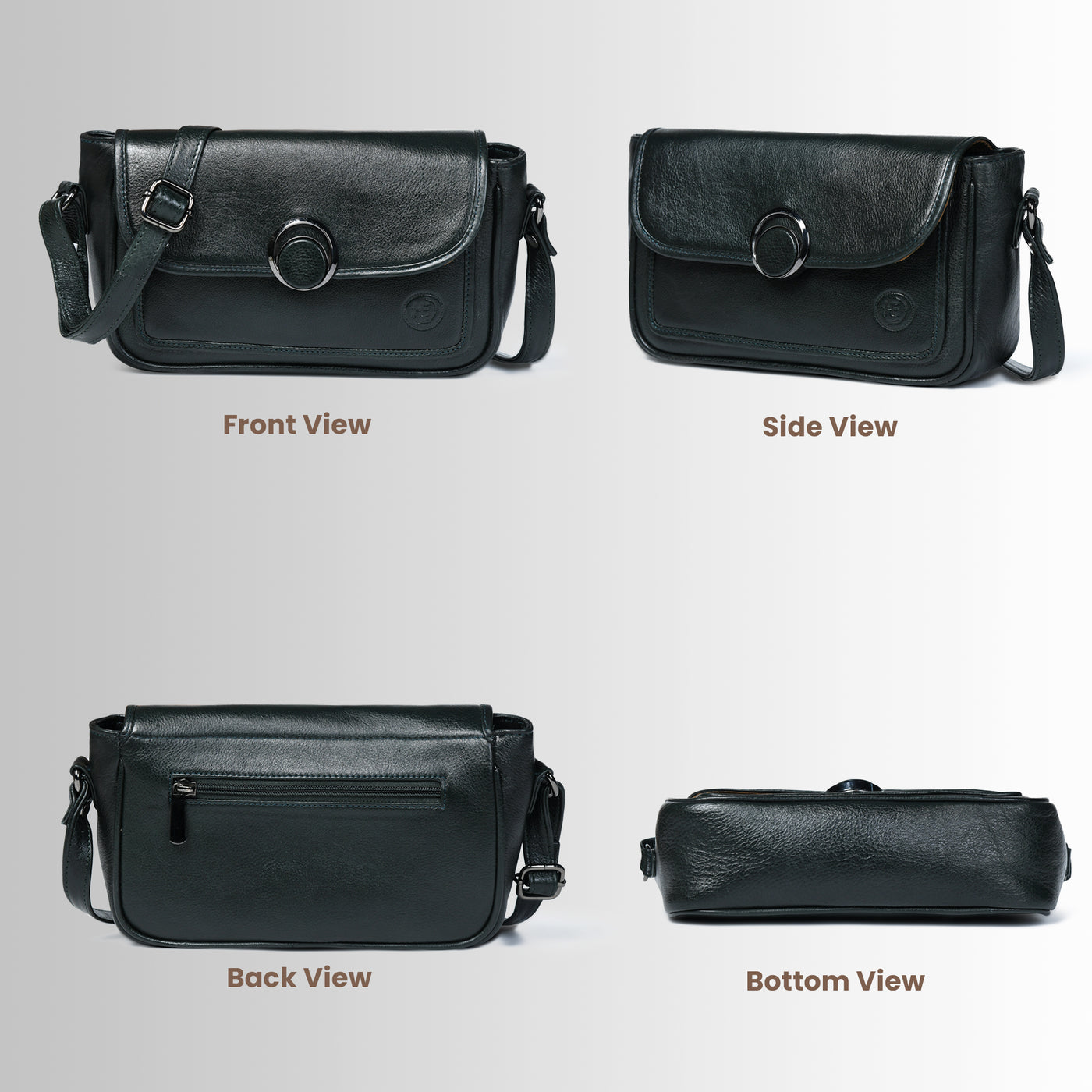 Verdant Elegance Women's Leather Handbag | Premium Leather with Circular Clasp | Black – Hestern