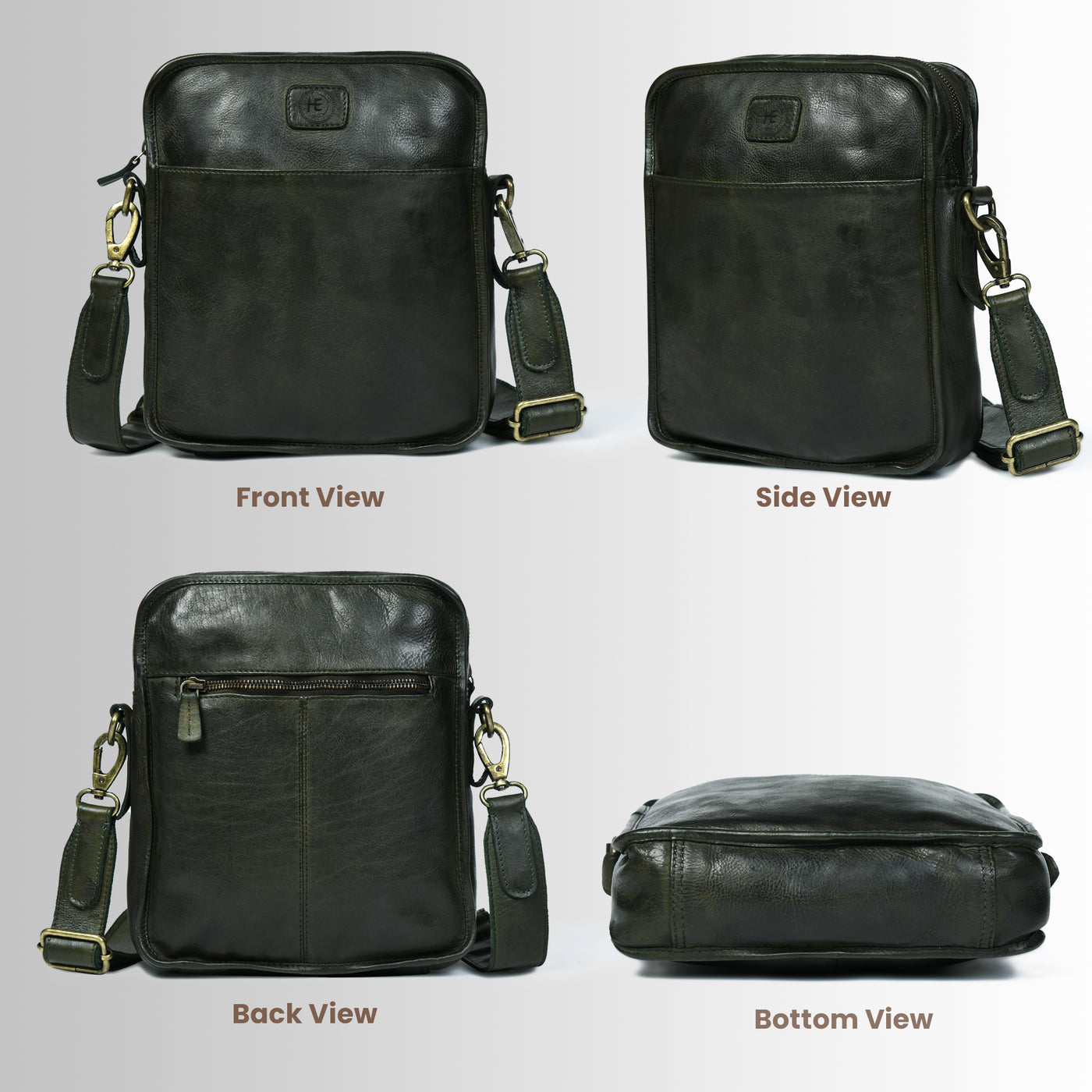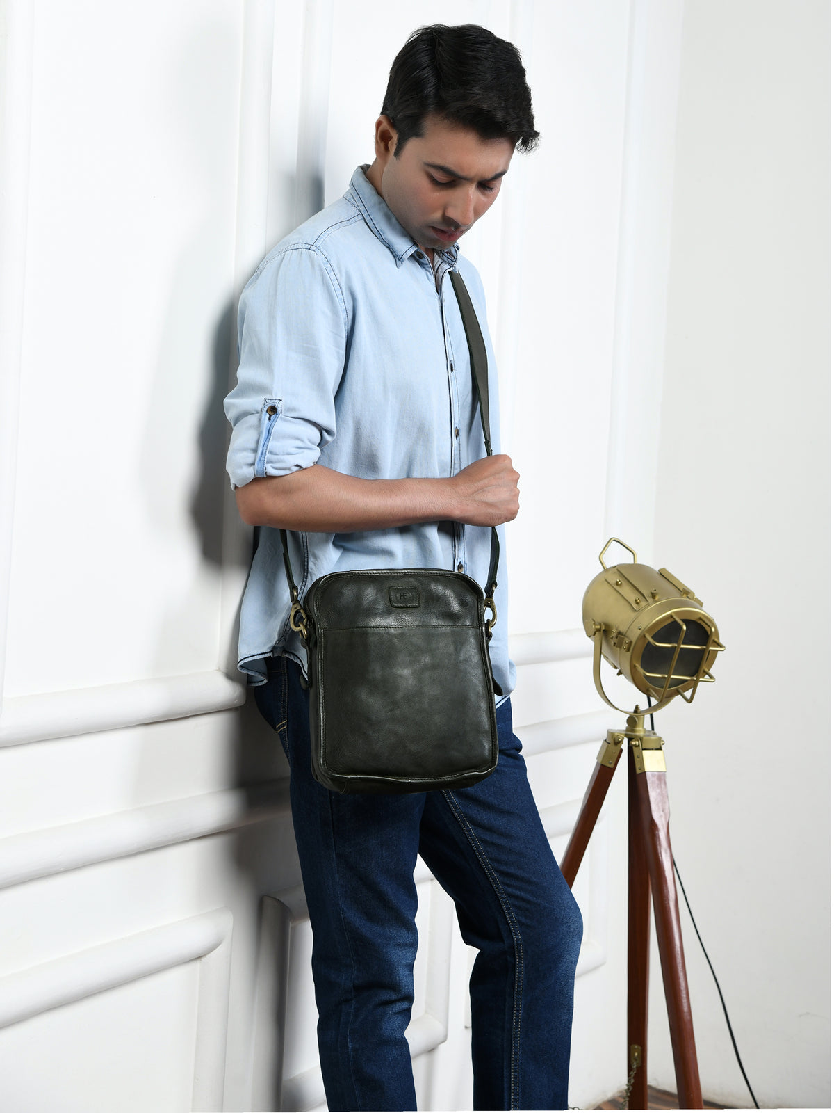 Verdant Trail Leather Sling Bag | Crossbody Bag for Men | Olive – Hestern