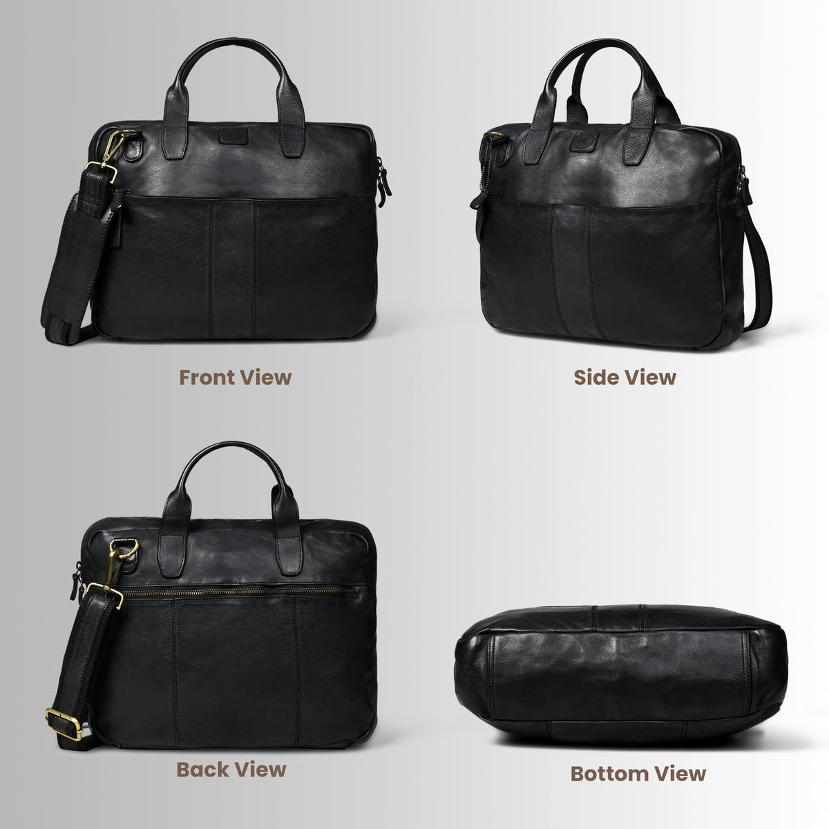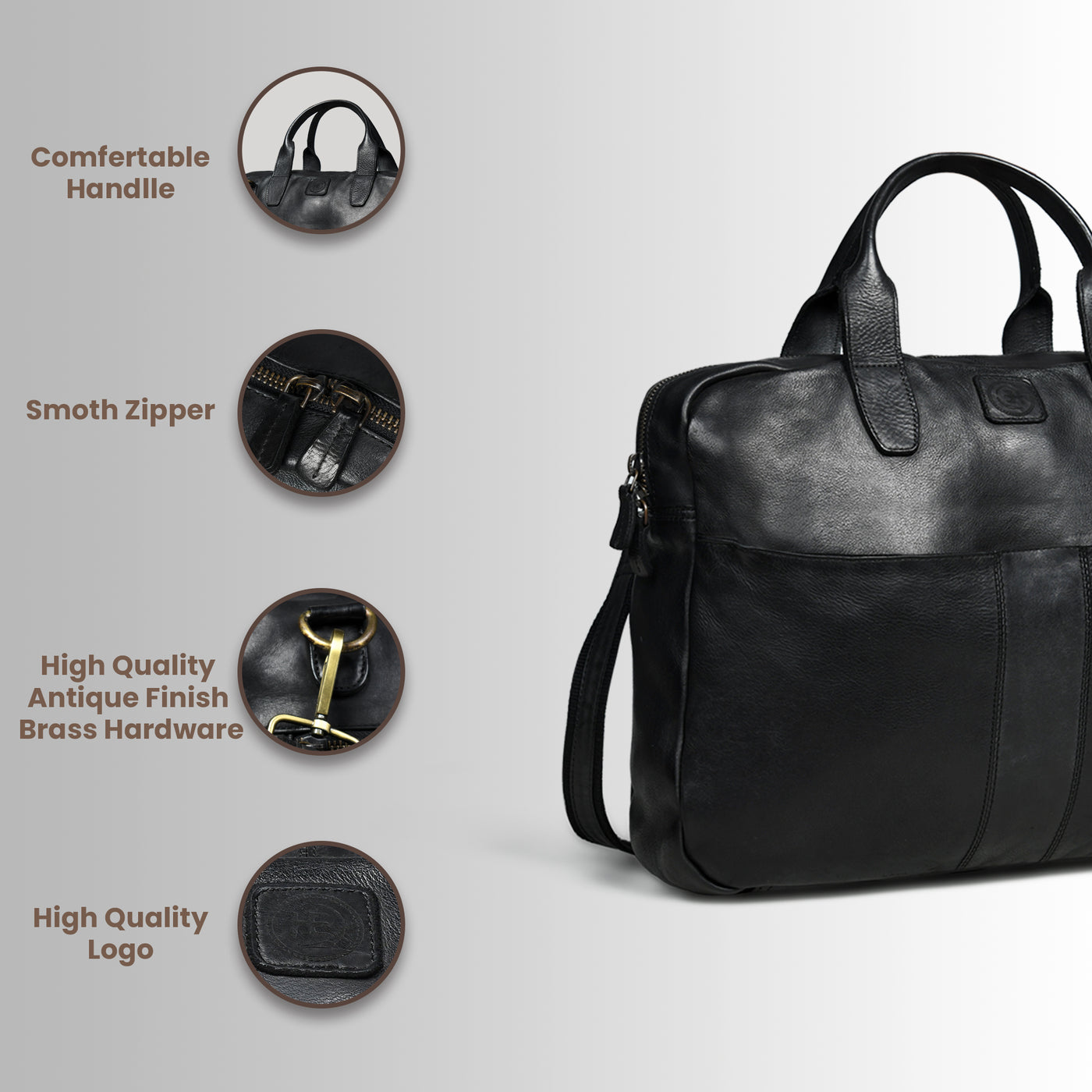 Voyager Premium Leather Laptop Bag | Full-Grain Buffalo Leather Office Bag | Black Colour – Hestern